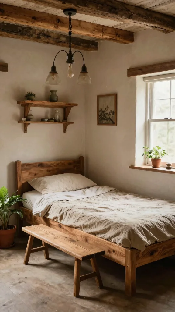 – Pair rustic furniture like a wooden bench or vintage trunk for added charm.