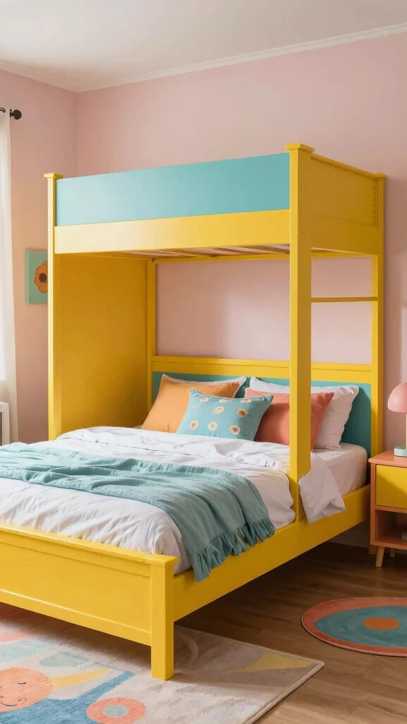 To implement this design, consider light wood finishes or crisp white hues for a clean, open look. Light curtains or blinds can help maximize natural light during the day, while pastel-colored accessories add a cheerful touch. Explore local home decor stores for affordable options to achieve this look.