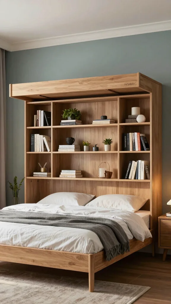 Optimize vertical space in your home with a Murphy bed that incorporates shelves. This design not only provides a cozy sleeping area but also offers additional storage, keeping your space organized and stylish. The shelves can display books, plants, or decorative items, turning your bed area into a chic focal point.