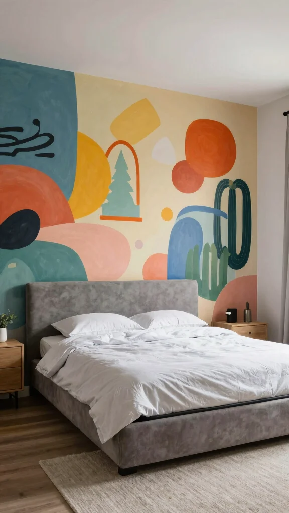 A colorful Murphy bed brightens your living area while offering practical space-saving functionality.