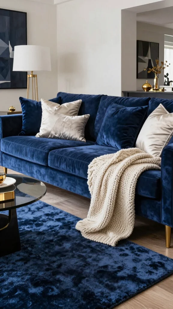 Incorporating luxurious textiles elevates your navy blue sofa to new heights of elegance. Rich fabrics such as silk, velvet, and heavy knits invite you to sink in and relax. Enhance the glamour by adding gold accents through decorative cushions or throws. Mixing patterns and textures creates a lavish atmosphere that feels indulgent.