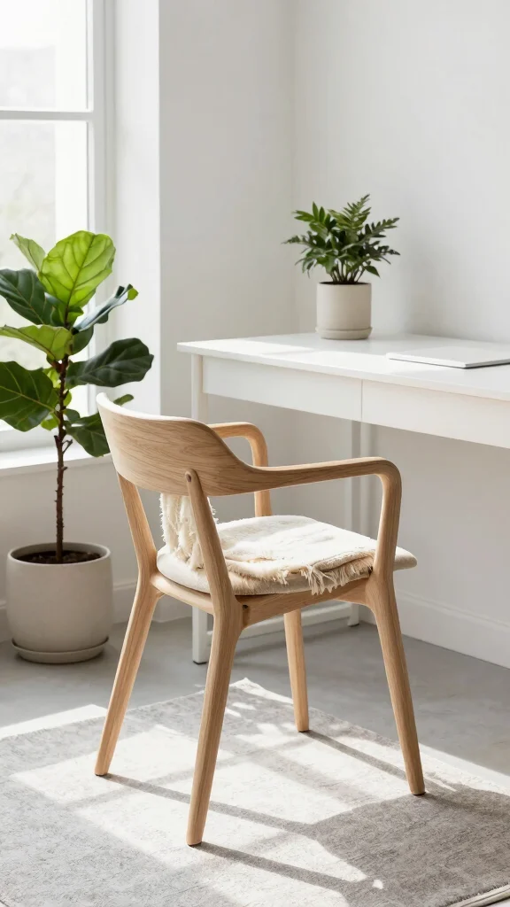 Embracing Scandinavian design invites simplicity and elegance into your workspace. The combination of sleek, light wood and a crisp white ergonomic chair creates an airy environment that is both calming and functional. Imagine a workspace where minimalist lines meet natural textures, encouraging a sense of peace and focus.