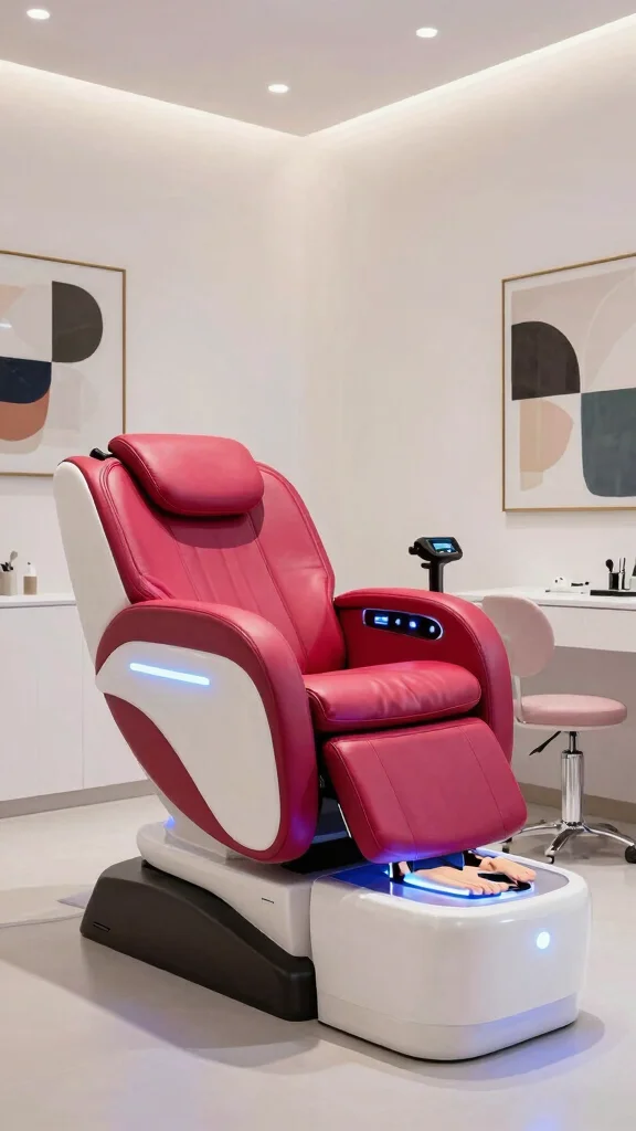 Step into the future with innovative pedicure chair designs featuring sleek curves and high-tech elements.