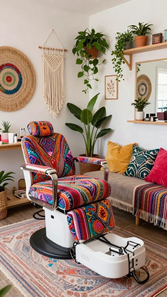 Celebrate your individuality with eclectic bohemian pedicure chair ideas that embrace a free-spirited vibe.