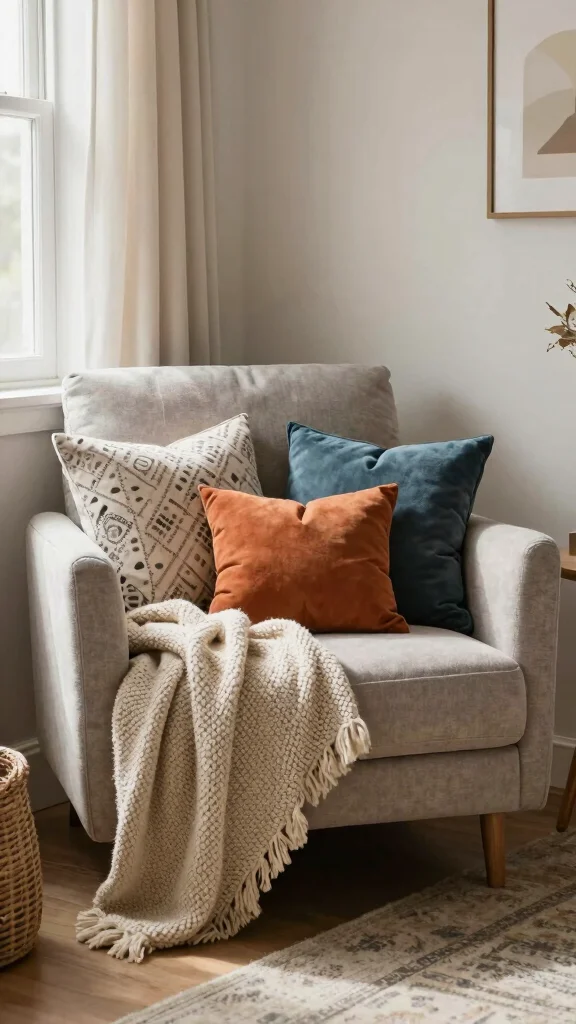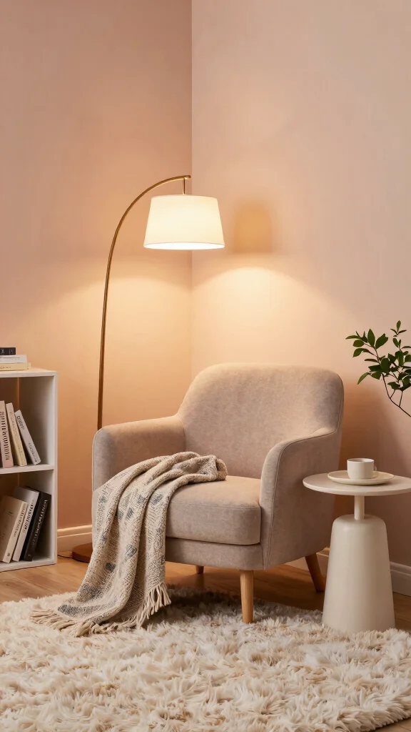 Add a small, round side table for your books and a soft blanket draped across the chair for added comfort. This minimalist approach promotes calmness, making it an ideal reading spot.