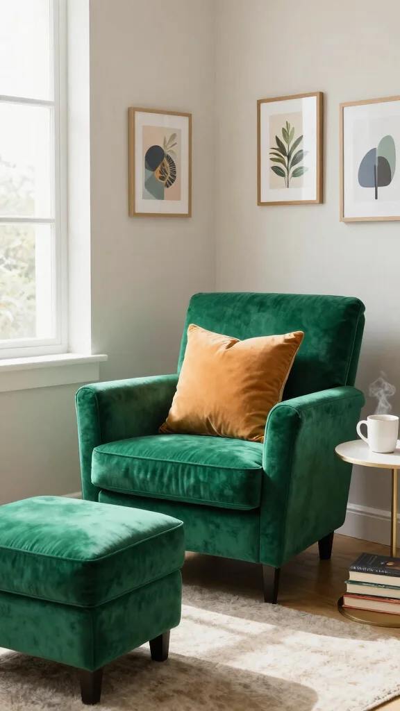Add a splash of personality to your bedroom with a colorful accent reading chair. This vibrant piece can become a stunning focal point, enhancing the overall decor while serving a functional purpose. Think about a bold velvet chair in a striking hue, like rich emerald green or deep sapphire blue, surrounded by softer tones to balance the space.