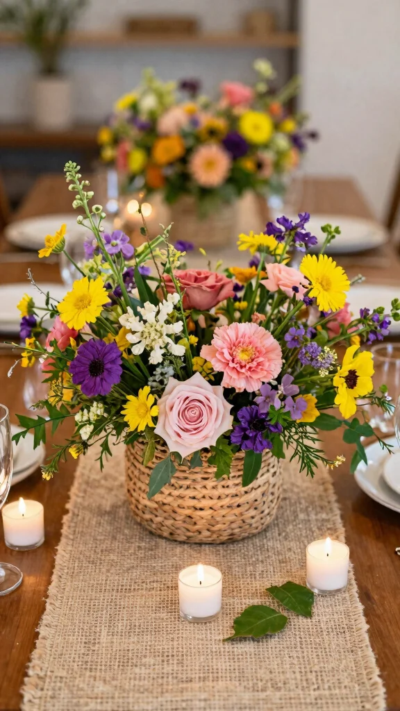 A lively floral centerpiece instantly transforms your dining table into a vibrant gathering spot. The combination of colorful blooms and lush greenery not only beautifies the space but also uplifts the mood, drawing everyone to the table. Consider using a mix of wildflowers and seasonal favorites arranged in a rustic vase or a charming woven basket. Bright hues can inspire joy, while softer shades offer an elegant touch. Enhancing the base with small candles creates a warm and inviting glow, perfect for family dinners.