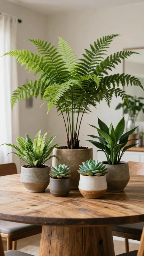Bringing nature indoors elevates the warmth of your round dining table. Adding fresh greenery or potted plants creates a calming atmosphere, perfect for family gatherings. Mix tall and short plants for layered heights and visual interest—ferns, succulents, or herbs can serve as lovely centerpieces.