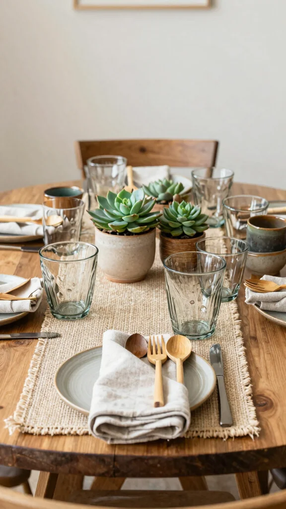 Choosing sustainable decor options not only beautifies your round dining table but also shows care for the planet. Use recycled materials for table settings, like upcycled glassware or bamboo utensils, and opt for potted plants instead of cut flowers for lasting beauty.