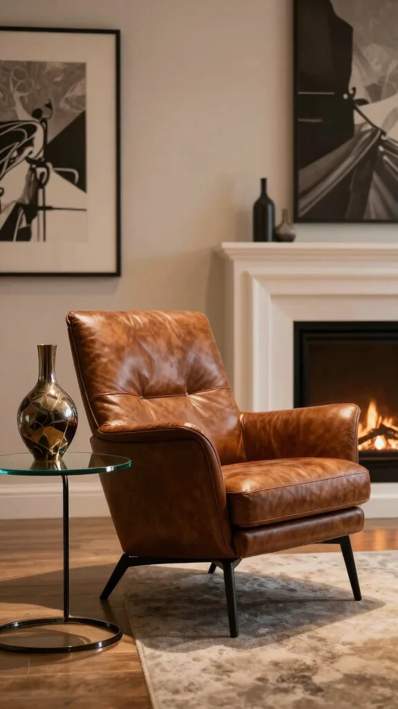 For practical styling, complement your leather chair with metallic accents like gold or brass to elevate the overall aesthetic. Opt for a chair with clean lines to maintain a minimalist vibe, and don’t forget to add a soft throw or patterned pillow for comfort and visual interest.