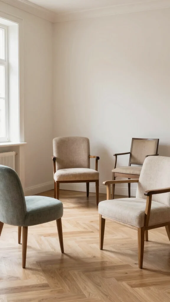 Keep colors limited (neutrals or a single accent hue) and choose materials like leather, linen, or wood that’s easy to maintain. Check seat depth and overall footprint to maintain minimalist seating solutions in tight spaces.