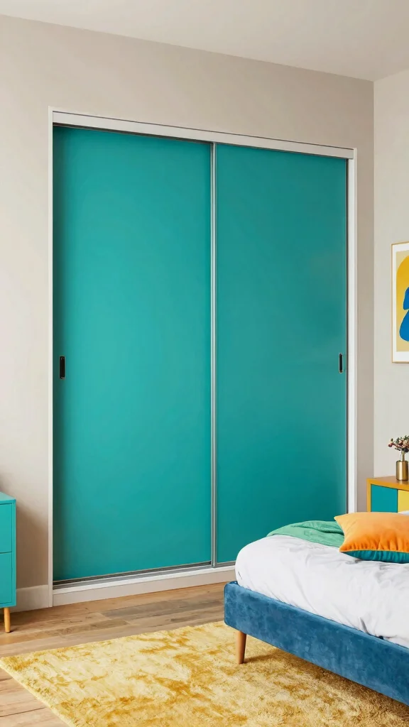 Transform your space with a pop of color on your sliding wardrobe, injecting energy and vibrancy into your bedroom. This lively choice allows for personal expression while maintaining an organized and stylish environment. By keeping the rest of the room neutral, you can let your wardrobe become a focal point.