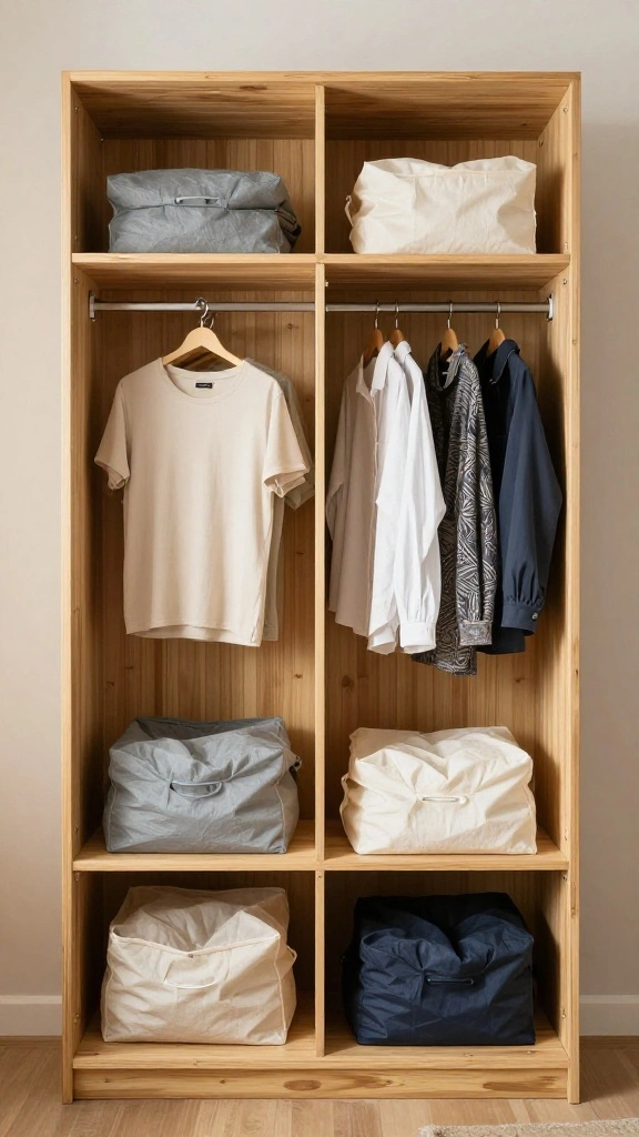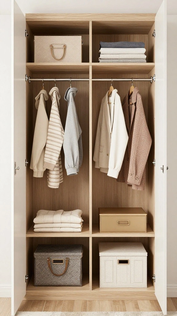 3. Zoning Areas: Divide your wardrobe into zones for different types of clothing. Consider having a section for hanging clothes, another for folded items, and even a small area for accessories. This organization helps in accessibility.