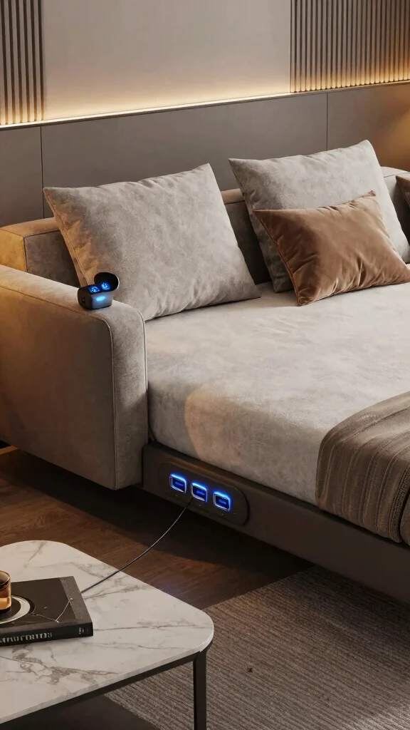 Incorporating smart technology into your sofa bed not only enhances your living area but also creates a cozy and connected environment, perfect for your modern lifestyle.
