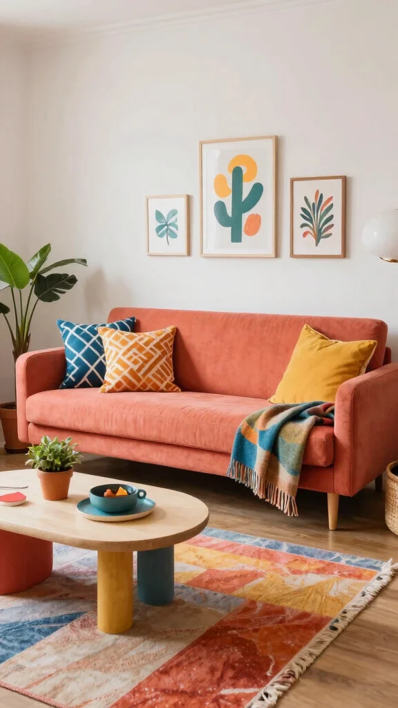 Keep a clear traffic path and choose a slim coffee table or ottoman that can double as seating.