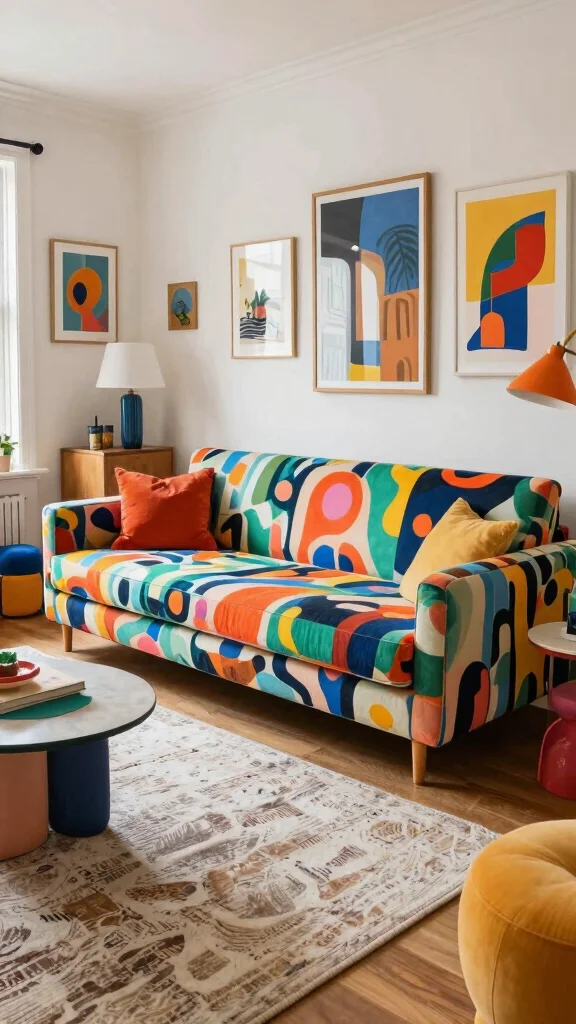 To enhance this artistic vibe, consider bold, graphic patterns that draw attention and energize the space. Unique silhouettes can challenge traditional furniture design, making your decor stand out. Playful color combinations can further enhance the ambiance, creating a dynamic atmosphere.