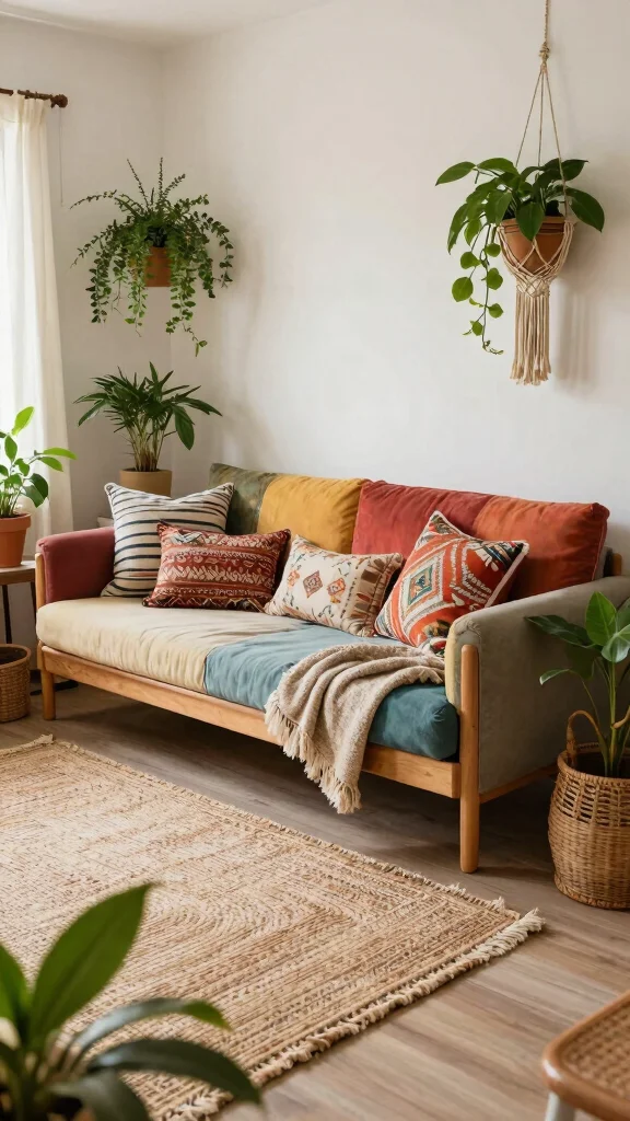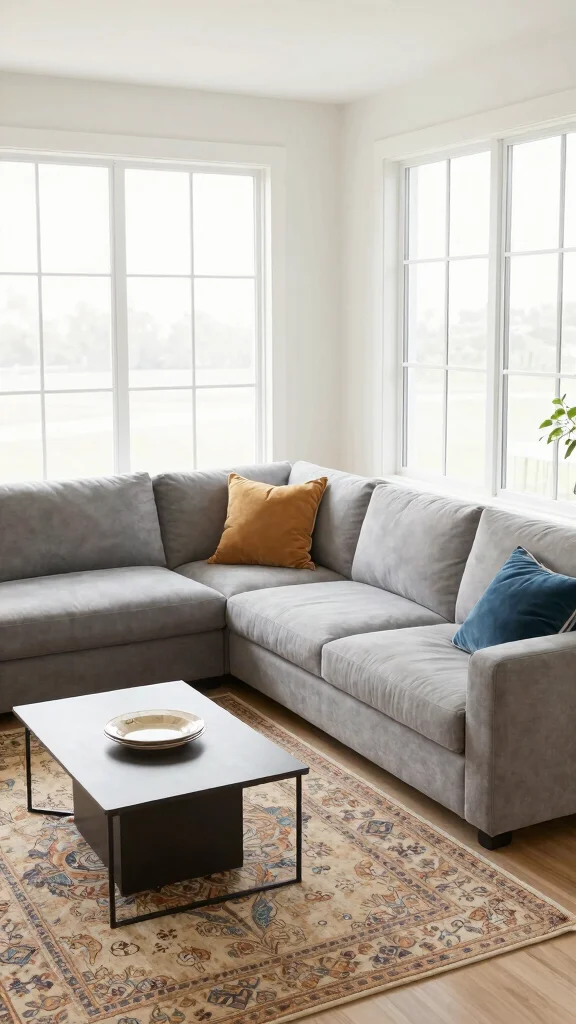 Choose neutral tones and modular pieces that can be rearranged, and avoid loud patterns that clash with other décor.