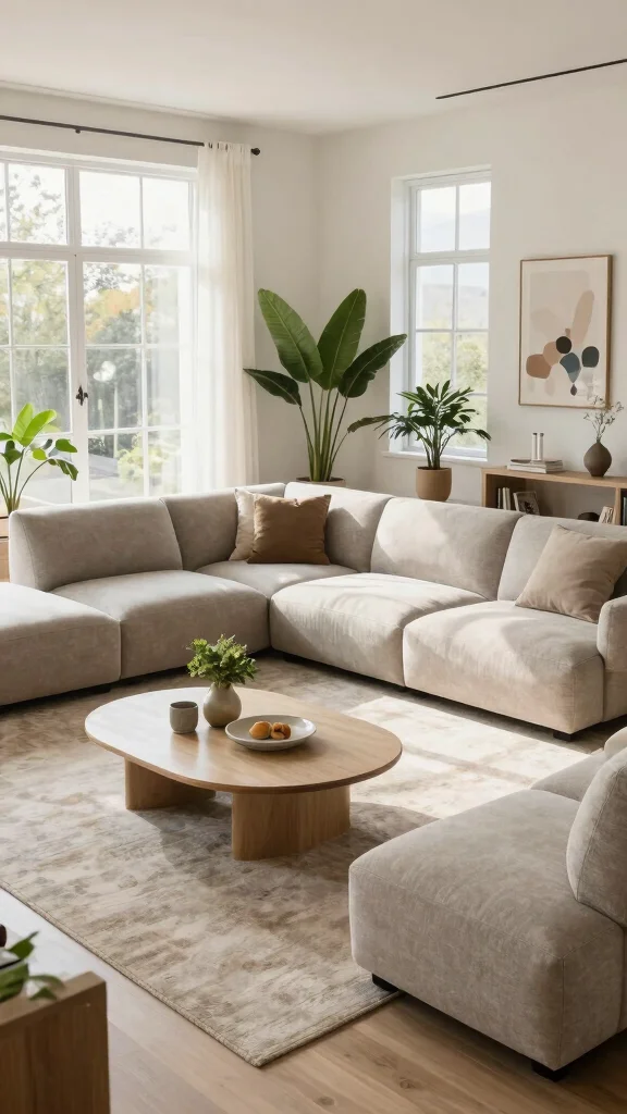 Select customizable modular sofas for flexibility, allowing you to adapt your living room layout easily.