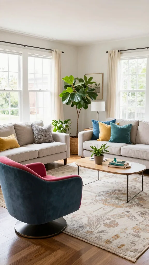 Combine swivel chairs with other seating options to create a dynamic and inviting living space.
