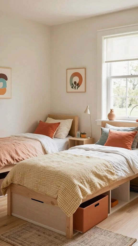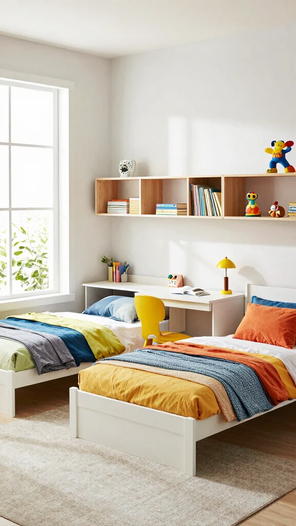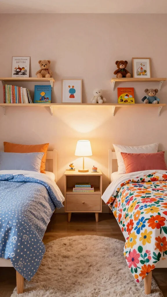 4. Avoid Overcrowding: Don’t try to fit too much in one room. Less is often more in a shared bedroom. Aim for balance, which promotes a calm atmosphere.