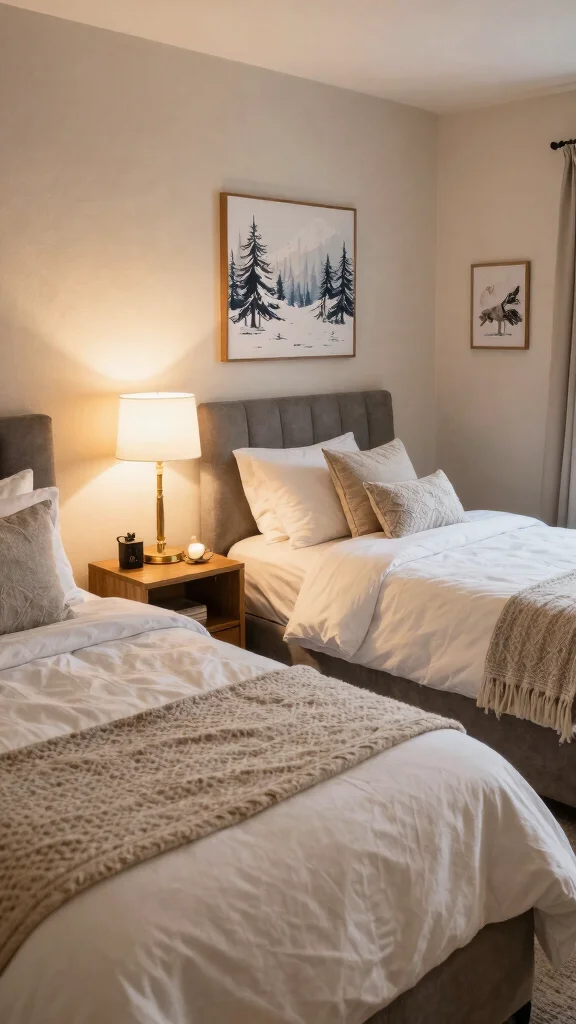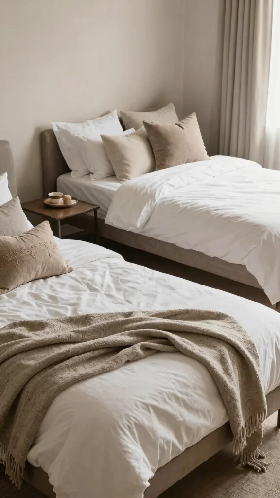 Designing a welcoming guest room with twin beds ensures visitors feel at home. Use neutral bedding with subtle patterns to create a soothing environment, and layer in plush throws and decorative pillows for extra comfort.