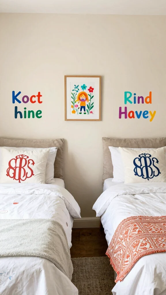 This approach encourages harmony in shared spaces and makes everyone feel included. Consider using removable decals with each child’s name above their bed or creating a joint art piece that represents their shared interests.