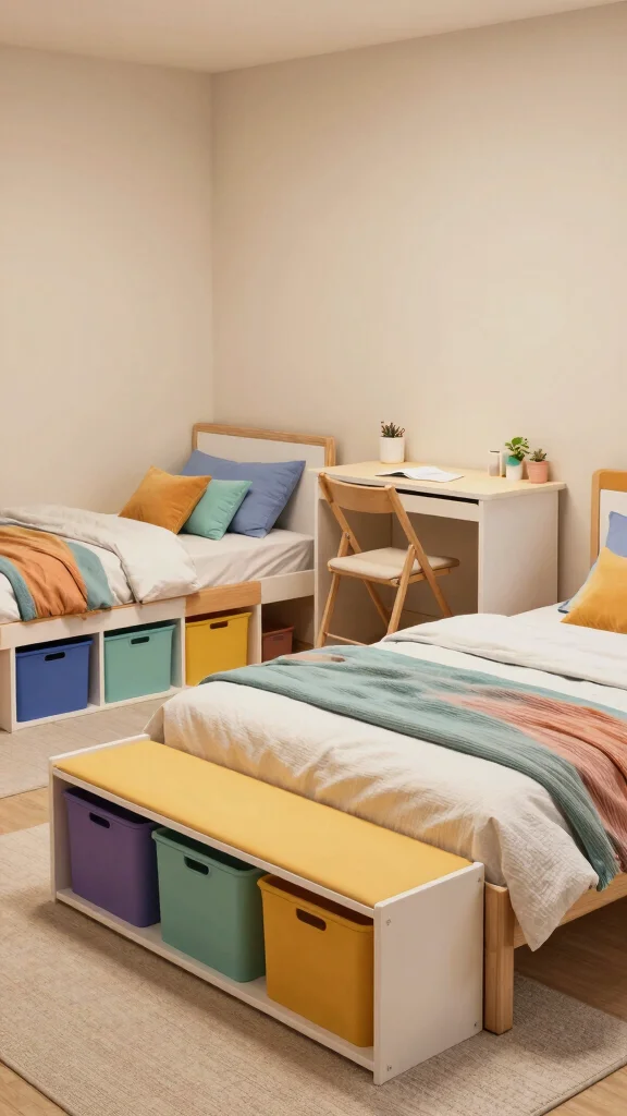 In small bedrooms, multi-use furniture can reclaim up to 30% more floor space. For two twin beds in one room, a bed that doubles as a sofa or a bench with hidden storage keeps the space tidy, practical, and ready for play or guests.