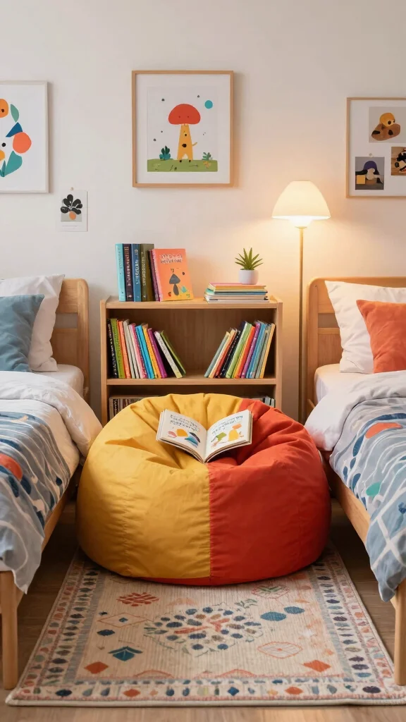 Creating a cozy reading nook in a twin bedroom can inspire a love for books. Position a small bookshelf or a colorful book cart between the beds, making it easy for kids to reach their favorite stories. Add plush bean bags or oversized cushions for a comfortable seating area where they can unwind.