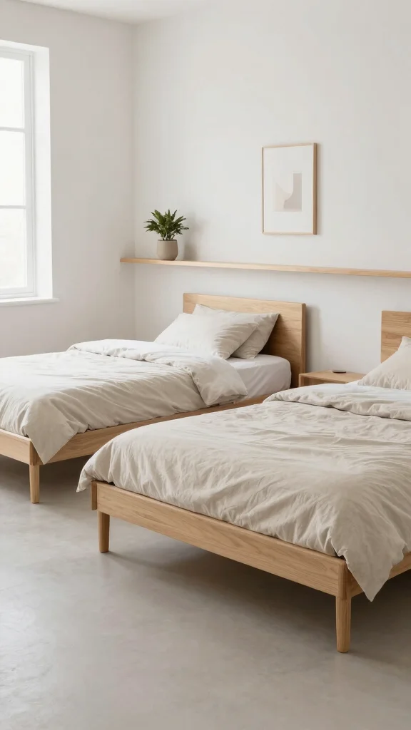 Adopting a minimalist approach to twin beds can create a serene and spacious environment. Choose sleek bed frames in light wood or metal, and opt for bedding in neutral tones to maintain a calm aesthetic. Layering textures is key to adding warmth without cluttering the space.