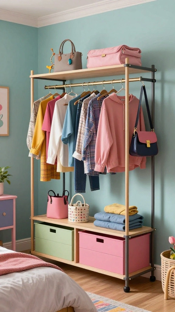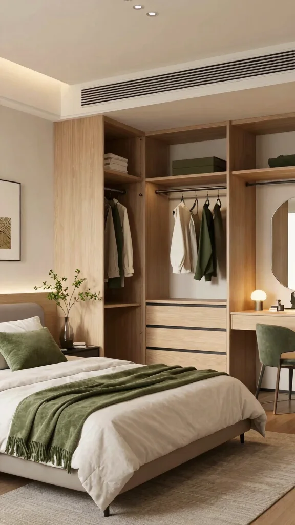 This approach is perfect for small bedrooms, optimizing vertical space while keeping your wardrobe stylish and functional.
