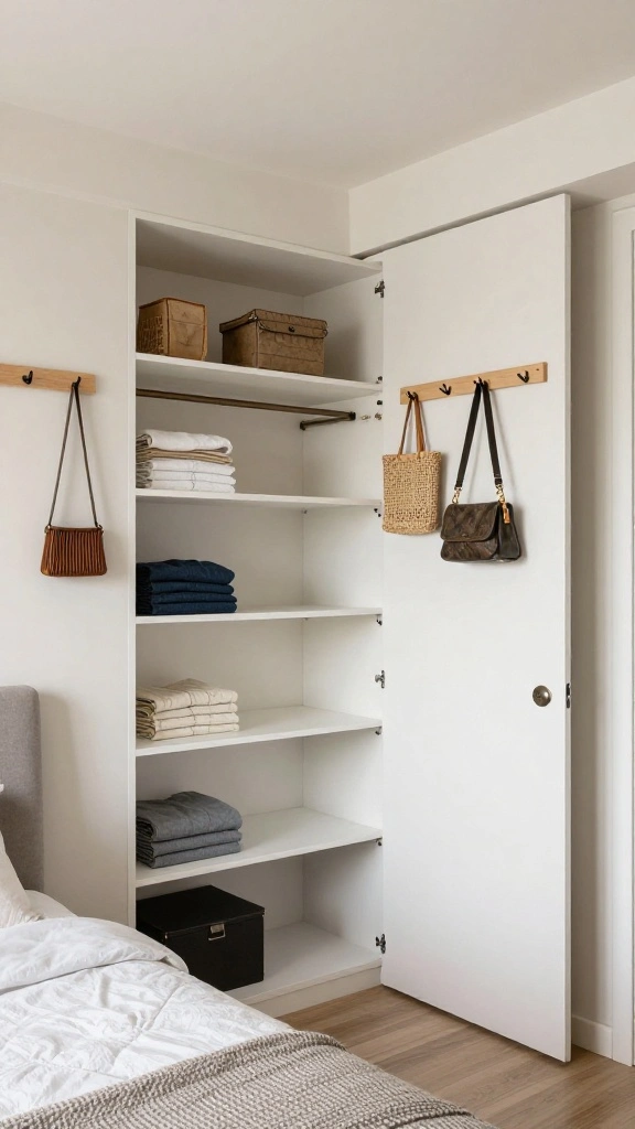 Consider installing shelves for folded clothes, shoes, or decorative items. Hooks can be a fantastic way to keep bags, hats, and accessories within reach. A small ladder shelf can add a touch of height and visual interest to your storage solutions.
