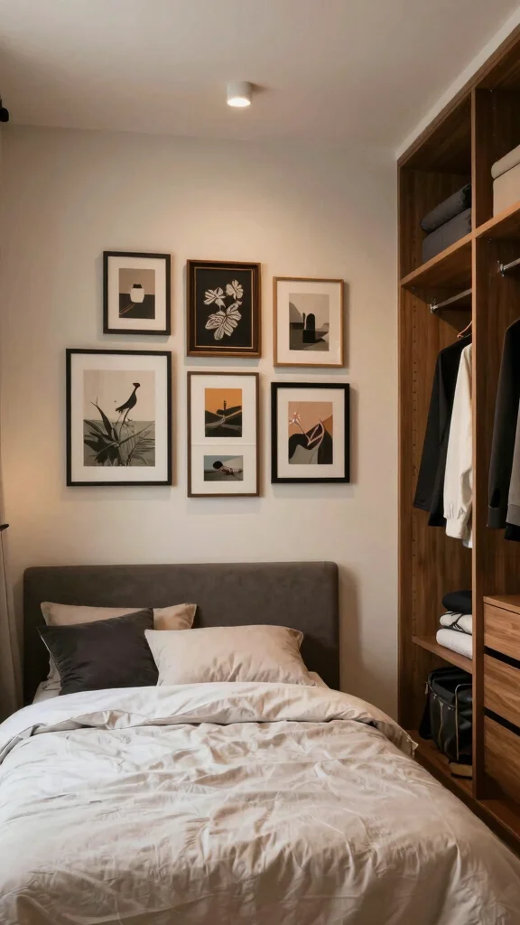 Consider creating a gallery wall of smaller frames to create a cohesive look or selecting a large statement piece for bold impact. Mixing media can add an eclectic vibe, ensuring the artwork resonates with your individual style and enhances your bedroom decor.