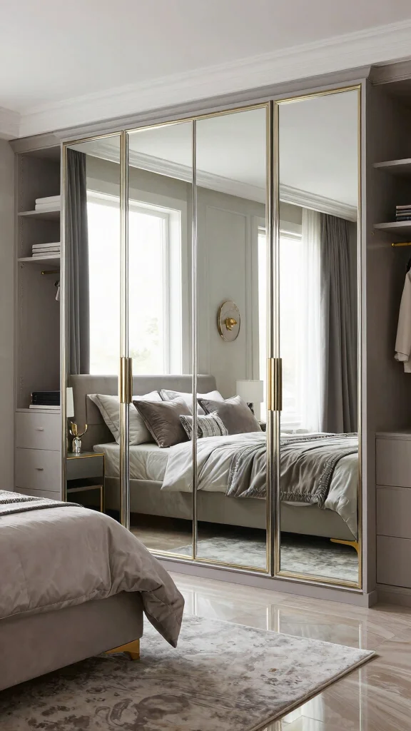 Install mirrored wardrobe doors to create an illusion of space and add elegance to your bedroom design.