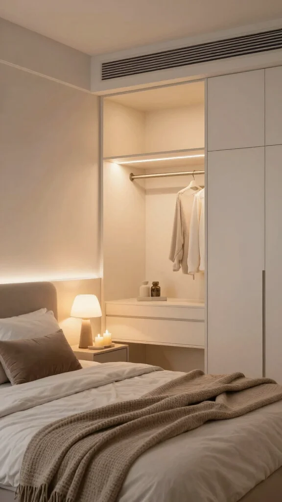 A well-lit wardrobe not only enhances functionality but also contributes to a peaceful nighttime environment, making your space feel truly inviting.