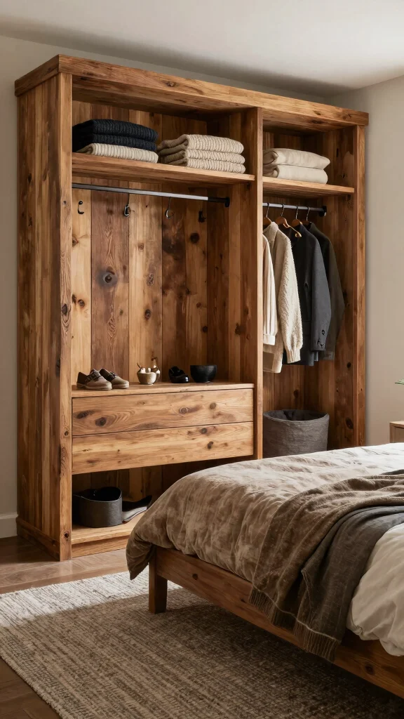 To achieve a rustic look, mix and match different wooden textures for depth and interest. Adding metal elements, like hooks or handles, can provide a beautiful contrast, while soft textiles can balance the harder surfaces, enhancing comfort.